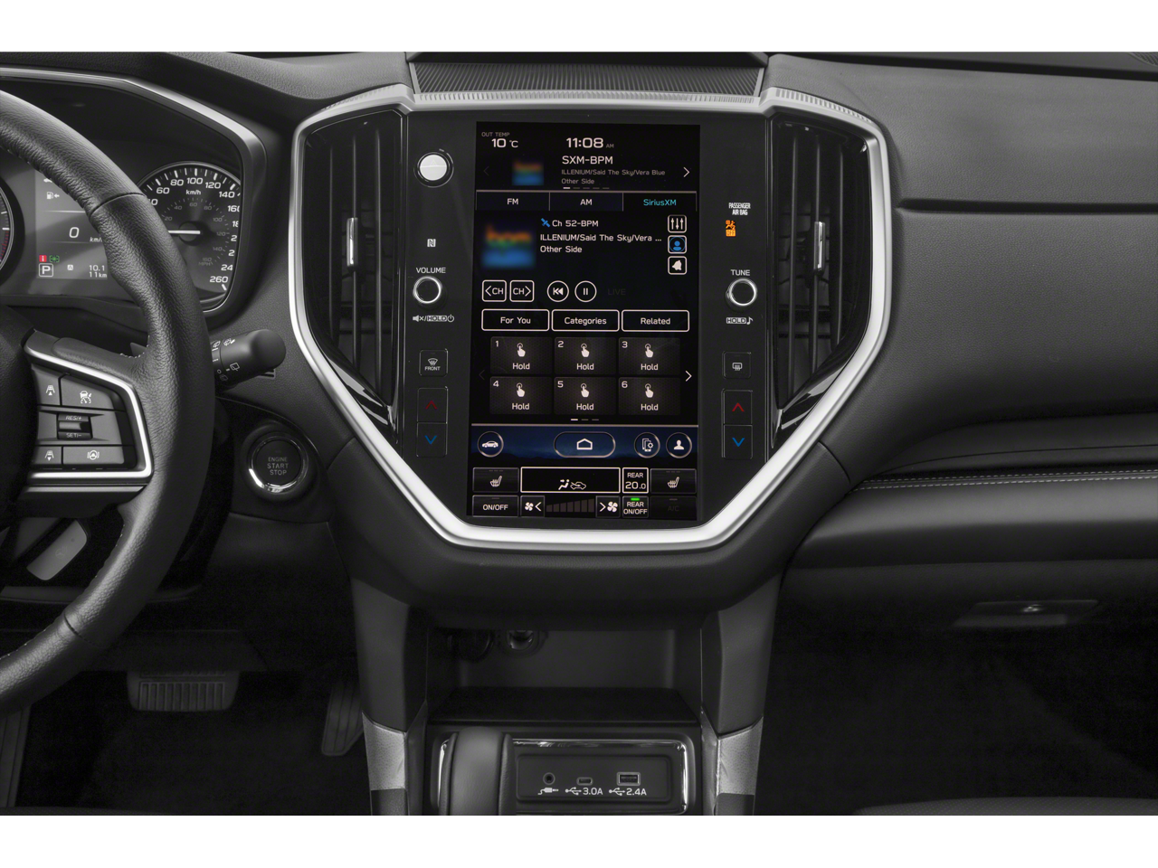 • Radio: Subaru STARLINK 11.6" Multimedia Plus System -inc: AM/FM stereo HD Radio, multi-touch gesture high resolution display screen, voice activated controls, Bluetooth® audio streaming and hands-free phone connectivity w/SMS text messaging connectivity (refer to subaru.com for cell phone compatibility), Near Field Communication (NFC), iPod control capability, SiriusXM All Access radio (4 months free trial/subscription required after), SiriusXM Travel Link (4 months free trial/subscription required after), smartphone integration for Android Auto and Apple CarPlay w/full screen view and wireless connection and STARLINK cloud applications, USB and Over The Air (OTA) audio system update, steering wheel controls for audio and Bluetooth®, 6 speakers, 3.5mm illuminated auxiliary input jack, and illuminated USB A and C input/charge ports