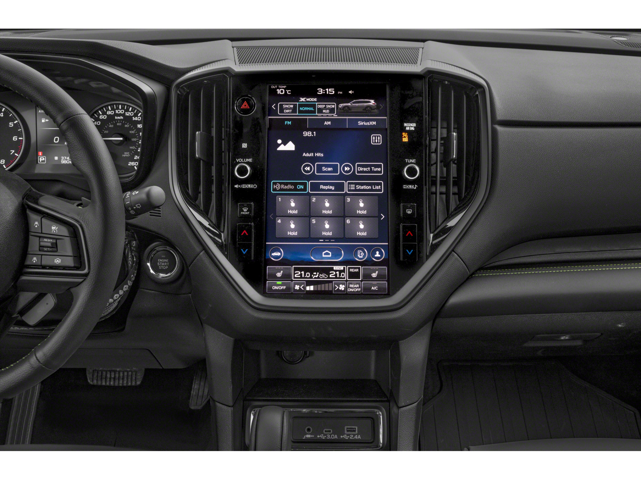 - Radio: Subaru STARLINK 11.6" Multimedia Plus System -inc: AM/FM stereo HD Radio, multi-touch gesture high resolution display screen, voice activated controls, Bluetooth® audio streaming and hands-free phone connectivity w/SMS text messaging connectivity (refer to subaru.com for cell phone compatibility), Near Field Communication (NFC), iPod control capability, SiriusXM All Access radio (4 months free trial/subscription required after), SiriusXM Travel Link (4 months free trial/subscription required after), smartphone integration for Android Auto and Apple CarPlay w/full screen view and wireless connection and STARLINK cloud applications, USB and Over The Air (OTA) audio system update, steering wheel control switches for audio and Bluetooth®, 6 speakers, 3.5mm illuminated auxiliary input jack and illuminated USB A and C input/charge ports